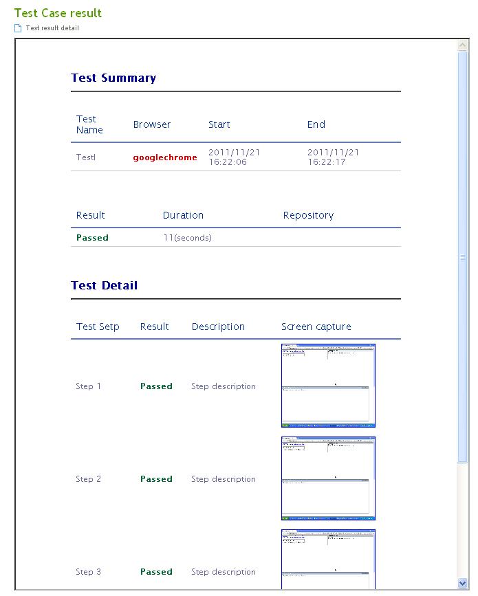 The Result Reports displays the detailed result log of actions performed on a System Under Test (SUT) on each script run.